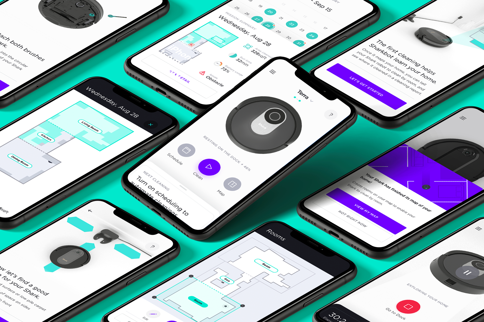 Our design team designed a high-craft user experience around several key functional areas including: onboarding and NUX, map and room creation/editing, cleaning, scheduling, history, and troubleshooting, among others.